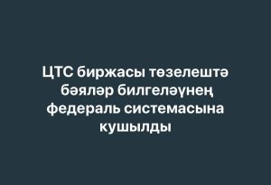 ЦТС биржасы төзелештә бәяләр билгеләүнең федераль системасына кушылды