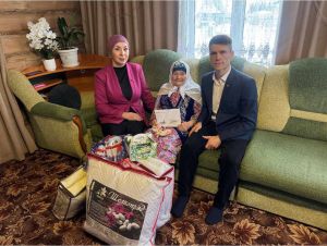 Юбилярга РФ Президенты В.В.Путинның котлау открыткасын һәм район башлыгы исеменнән истәлекле бүләкләрне социаль яклау бүлеге начальнигы Лилия Гайнетдинова, Югары Шытсу авыл җирлеге башлыгы Булат Мәүлетов тапшырды