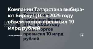 Татарстан компанияләре ЦТС Биржасын сайлый: 2025 елда сату күләме 10 млрд сумнан арткан